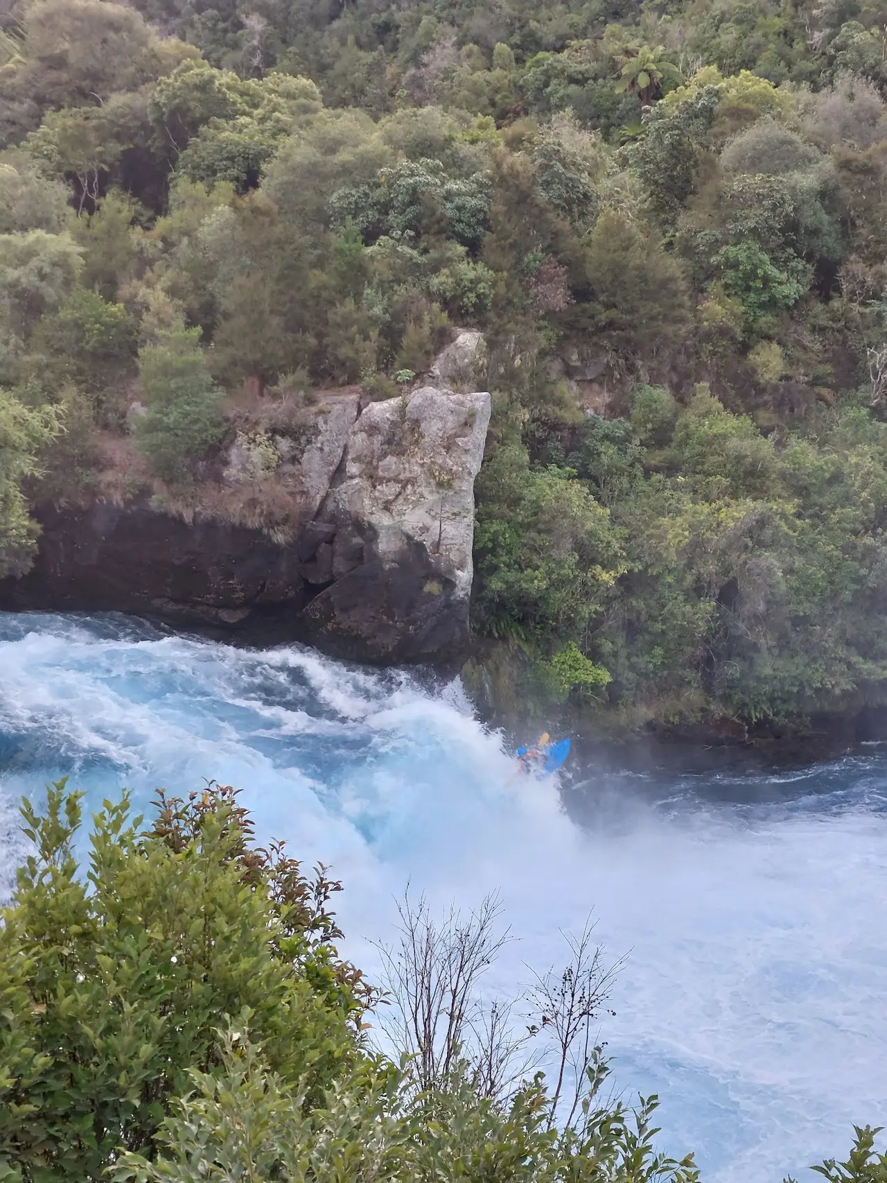 On Saturday morning, we intended to drive in convoy to the Āniwaniwa take-out, but that didn’t happen because neither Dion or Anna had food and had to stop at the supermarket. Luckily everyone still made it with no accidental detours via Rotorua. After a safety briefing led by the Assistant Instructors, a few people had to learn how to wear a double-tunnel dry-top, and then we were on river before 10am. Ben started things spicy by sending Āniwaniwa falls rather than getting in below the powerstation like someone with a fully-developed prefrontal cortex.