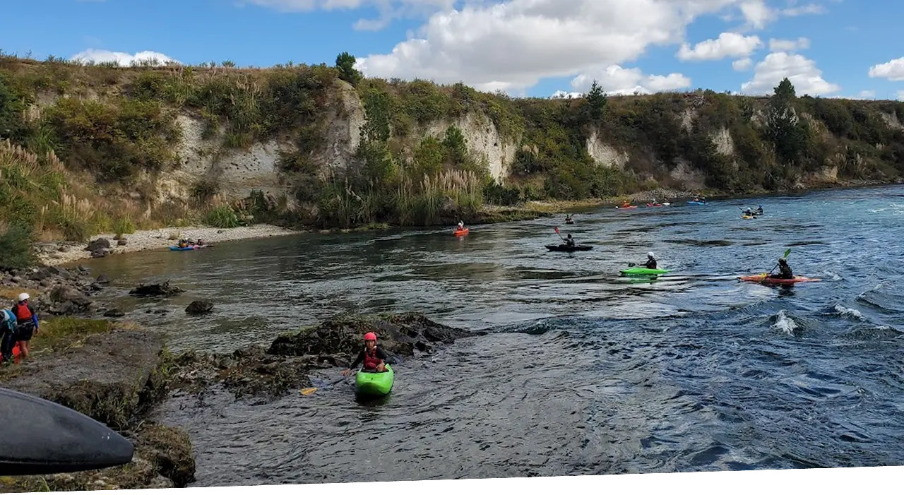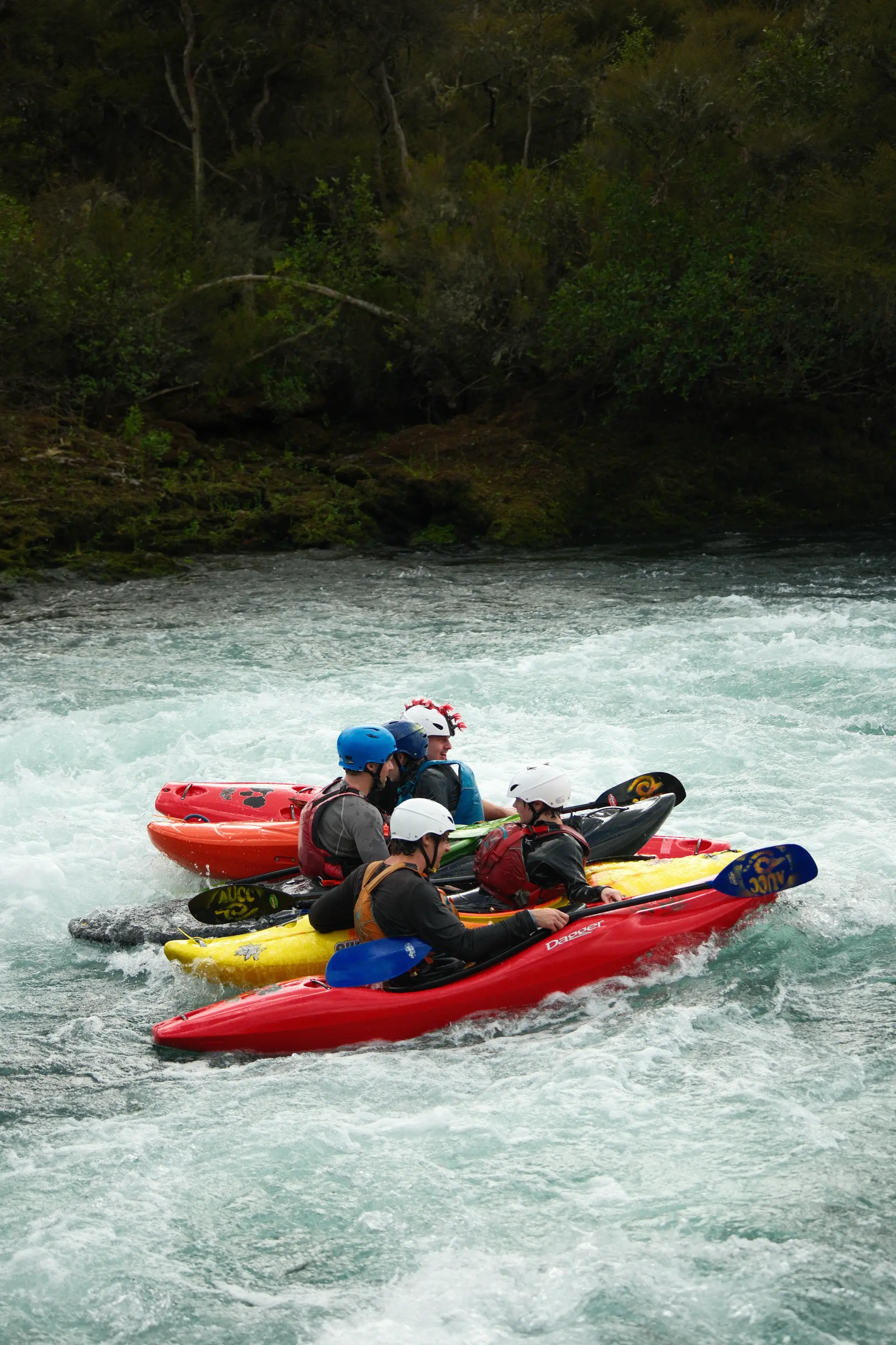 Over the last weekend of April 2023, 12 up-and-coming AUCC paddlers returned to the much-loved Kawerau Scout Hall for a weekend of upskilling on the Rangitaiki and Tarawera rivers. The skill level of the attendees in the group varied from fresh-faced Seconders to experienced Instructors. The focus of the weekend was to get those keen Seconders, already mostly self-sufficient on class II whitewater, to refine their technique, push themselves to make harder moves on the river, and generally get more boat time (and also learn how to surf and look cool 😎). Also, very excitingly, 50% of the paddlers on the trip were female!